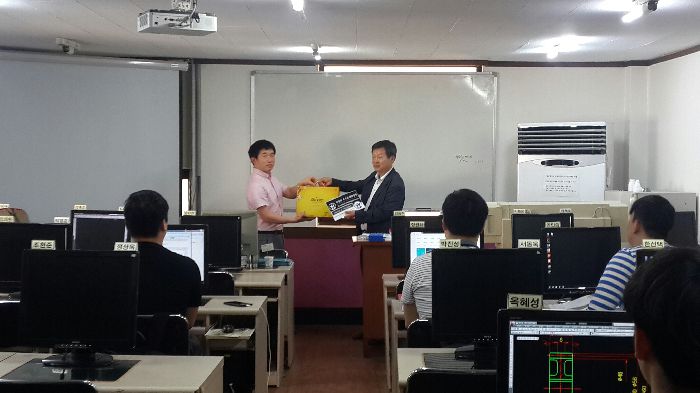 2017.06.07 훈련생들의 학습의욕을 고취시키기 위해 2017년 5월 훈련진행중인 전체훈련과정 중 [그린에너지전기설비], [CAM가공 및 기계요소설계] 과정을 교내 우수훈련과정반 선정하여 시상식을 하였습니다.