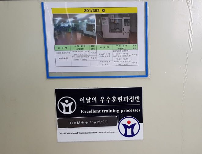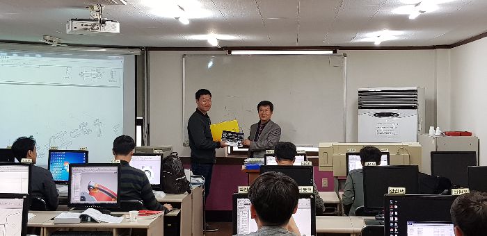 2017.11.02 훈련생들의 학습의욕을 고취시키기 위해 2017년 10월 훈련진행중인 전체훈련과정 중 [CAM응용가공]과정을 교내 우수훈련과정반 선정하여 시상식을 하였습니다.