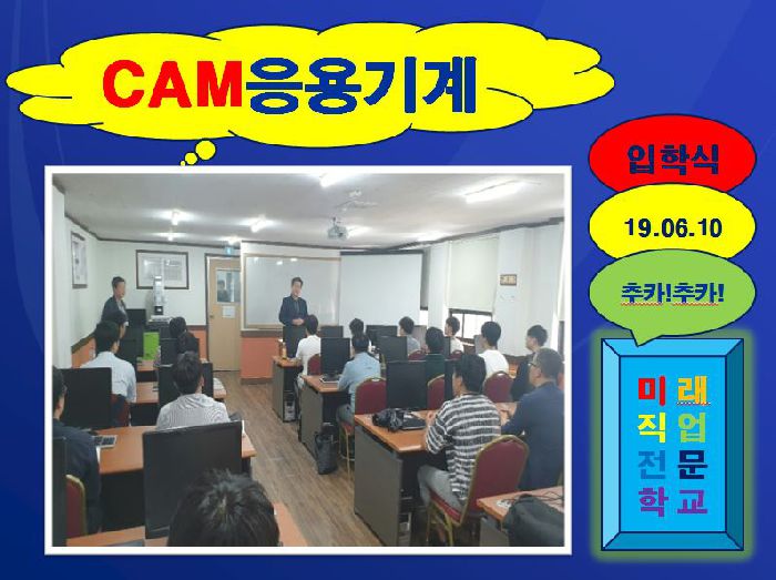 2019년 06월 10일...CAM응용기계과정의 입학식과 더불어 2019년도도 어느덧 한가운데를 달리고 있습니다. 여름을 맞이하여 개강한만큼..,컨디션조절잘해서 수업에 임할수있기를 바라며, 수료와 동시에 취업에 성공할수 있도록 저희 미래직교도 더더욱 신경쓰도록 하겠습니다. 문뜩문뜩 행복하세용 CAM응용기계...화이링~~~ |