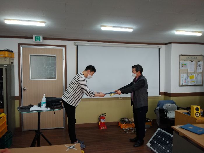 2021년 4월 23일 스마트 태양광발전및 전기실무(B)과정의 수료식이 있었습니다. 코르나19로 인한 어려운 현실에서도 훈련생 모두가 학습에 대한 열정으로 건강히 100% 수료를 하게 되어 미래직업전문학교 교직원 모두가 진심으로 축하를 드리며, 수료생 여러분의 100%취업을 위해 본교에서도 취업전담원을 중심으로 교직원 모두가 함께 노력하며 앞날을 응원하도록 하겠습니다.