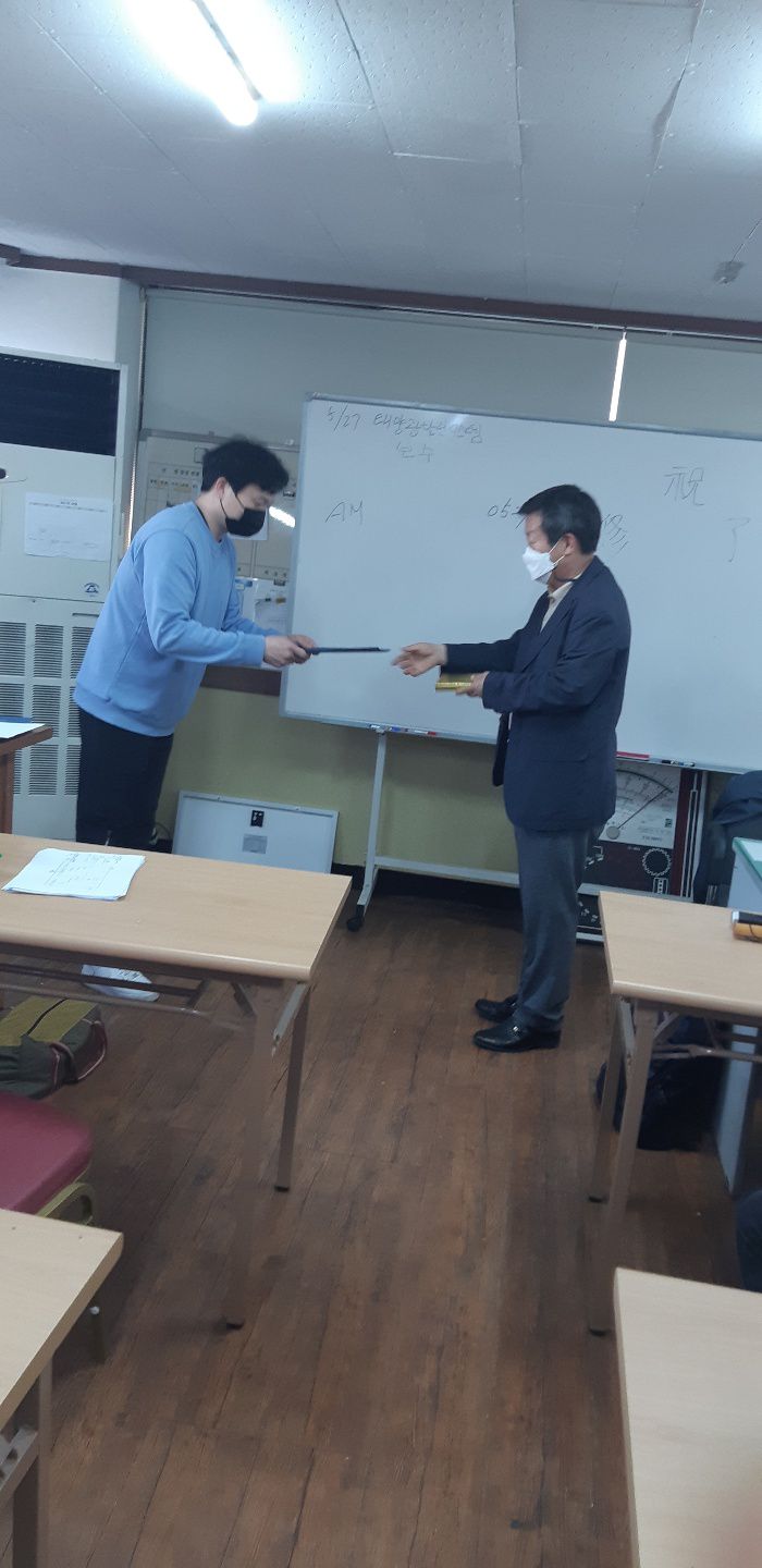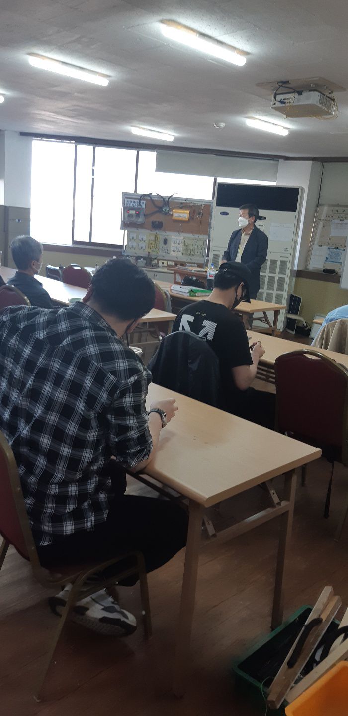2021년 5월 27일 태양광발전설비(내선공사및 원격보조 포함)(B)과정의 수료식이 있었습니다. 스마트혼합훈련과정으로서 원격훈련과 병행한 교육훈련으로 수고가 너무 많았습니다. 본교에서는 모두가 건강히 수료를 하게 된것을 진심으로 축하드리며, 아울러 빠른시일내 취업으로 좋은일만 가득할 수 있도록 미래직업전문학교가 여러분과 함께 하도록 하겠습니다.